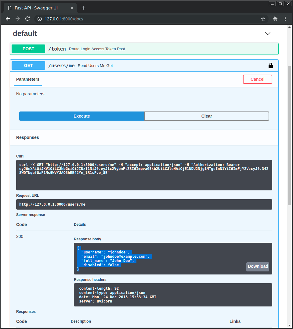 서버를 실행하고 문서로 이동하십시오: http://127.0.0.1:8000/docs.